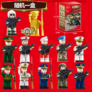 森宝积木海陆空军部队人仔拼装模型武器盲盒儿童益智玩具男孩礼物