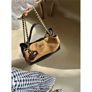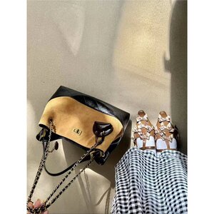 磨砂麂皮水桶包包女大容量慵懒松弛感单肩包小香风中古链条托特包