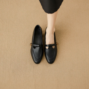 现货大码41-42法式玛丽珍小皮鞋百搭一脚蹬真皮山茶花单鞋1328-1A