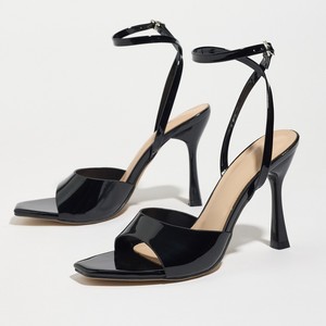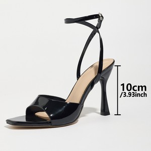 女士纯色光板高跟凉鞋小方头女鞋细高跟穆勒收腰