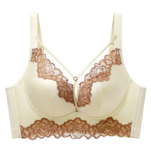 时尚轻奢美胸聚拢调整型内衣女上托不空杯束胸无钢圈蕾丝文胸罩
