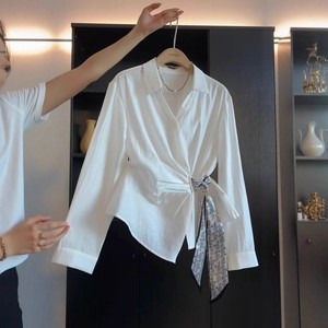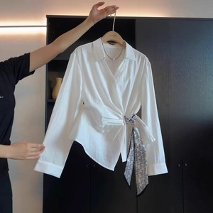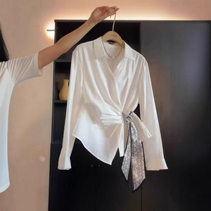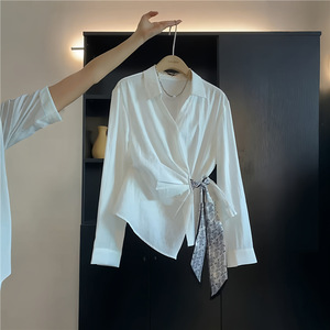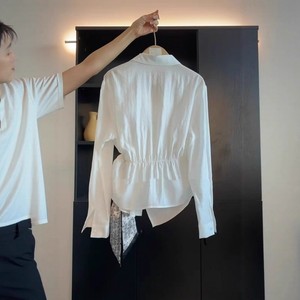 法式设计感白色侧绑带丝带收腰衬衫女秋季新款小众设计感别致上衣