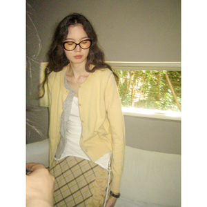 金涯 澳洲美利奴100s全羊毛亲肤柔软透气miu风撞色假两件针织开衫