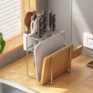 304不锈钢刀具置物架刀架砧板一体架带筷子笼厨房家用菜板收纳架
