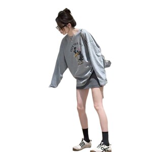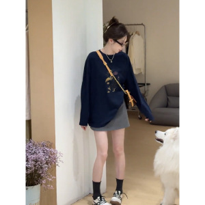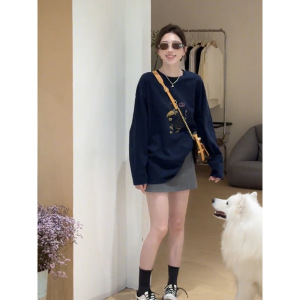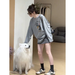 韩系时尚设计感卡通印花圆领百搭长袖T恤女2025秋季新款气质上衣