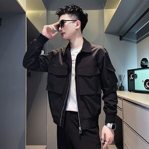 高级感多口袋军绿色工装痞帅夹棉外套男士夹克春春秋男装翻领棉衣