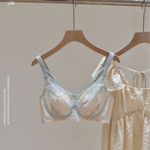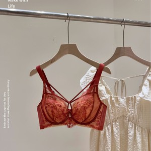 新款056双层网纱自然通透舒适聚拢轻薄水晶杯内衣大胸显小文胸罩