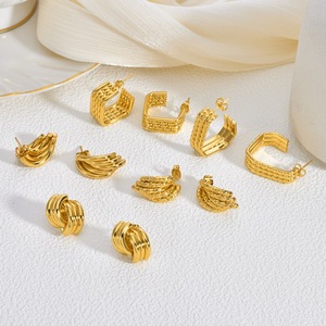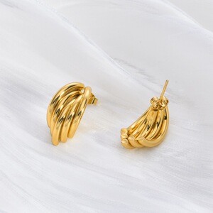跨境欧美不锈钢耳环轻奢高级感耳饰女设计感小众时尚百搭金色耳钉