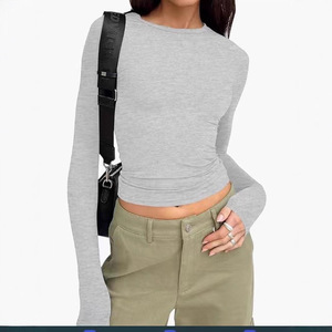 欧美跨境女装纯色修身长袖显瘦T恤女百搭辣妹穿搭打底上衣外贸