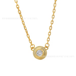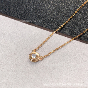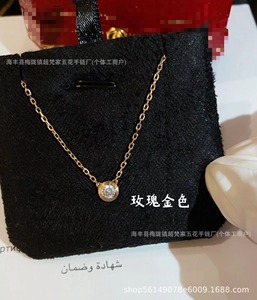 卡家高版本一颗钻项链送女镀18K金单钻小圆饼项链飞碟锁骨链代发
