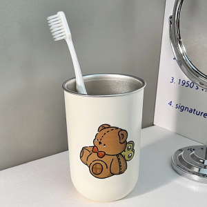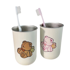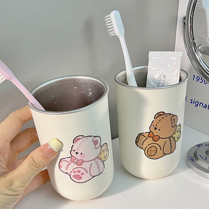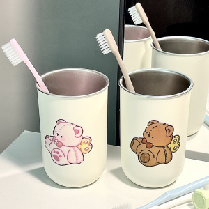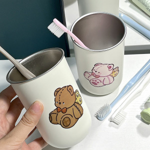 儿童可爱小熊款牙刷杯304不锈钢卡通简约创意情侣一对刷牙漱口杯
