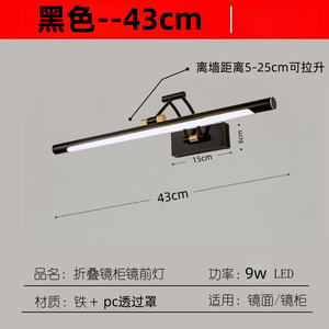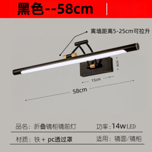 led可折叠镜前灯简约免打孔防水雾新中式镜柜壁灯卫生间化妆壁灯