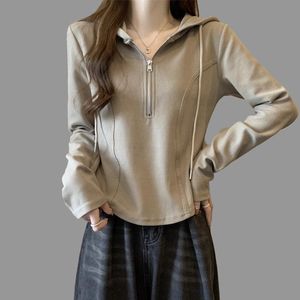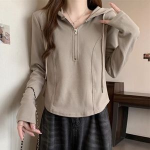 带帽卫衣女春秋新款法式长袖t恤女打底衫内搭修身连帽春秋上衣女