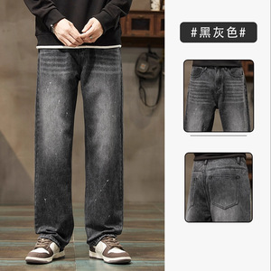 美式复古青少年阔腿春秋季男士牛仔裤直筒宽松男生水洗休闲长裤子
