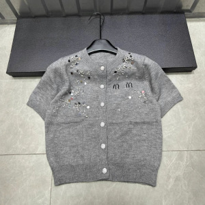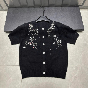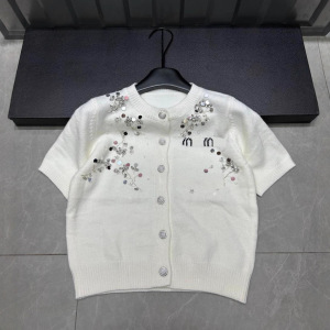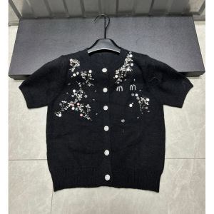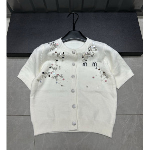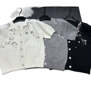 25年秋季新款nn家字母重工珠片针织短袖单排扣开衫宽松百搭女毛衣