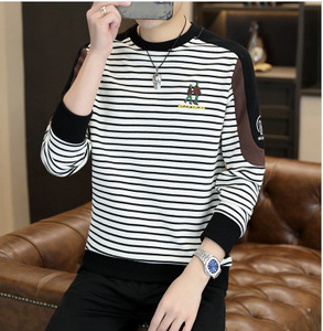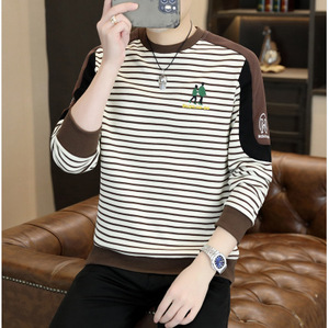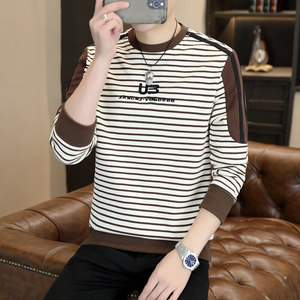 条纹卫衣男款无帽设计感长袖t恤男时髦帅气圆领打底衫男春装上衣