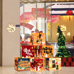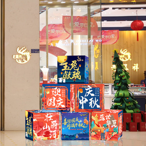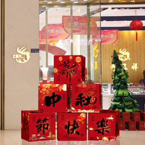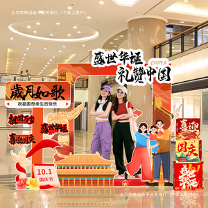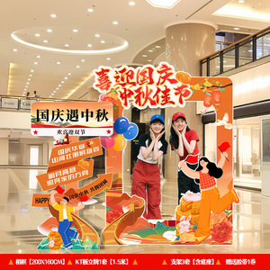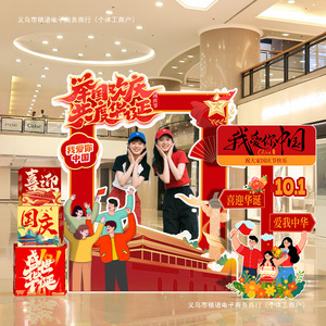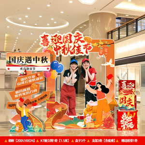 国庆中秋节布置氛围场景店铺商场活动装饰打卡拍照相框背景墙板