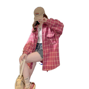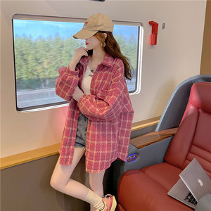 韩系复古加厚格子外套女秋冬季小个子慵懒风大码宽松衬衣轻熟上衣