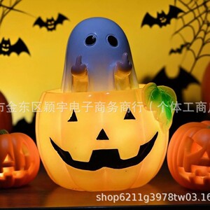 跨境新品亚马逊独立站万圣节幽灵南瓜LED小夜灯树脂工艺装饰摆件.