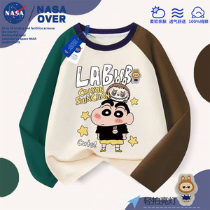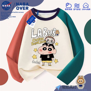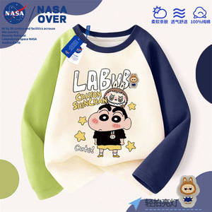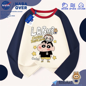 NASA蜡笔小新拉布布纯棉插肩长袖t恤春秋季新款中大童发光打底衫