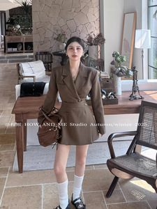 【FEI】腰封式西服套装韩系收腰显瘦长款西装连衣裙+半身裙套装