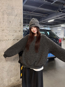 设计感圆领条纹长袖套头卫衣女秋季新款韩系百搭宽松显瘦休闲上衣