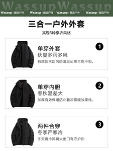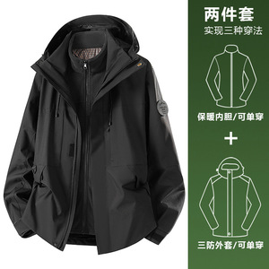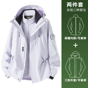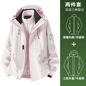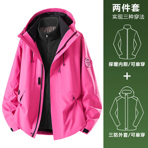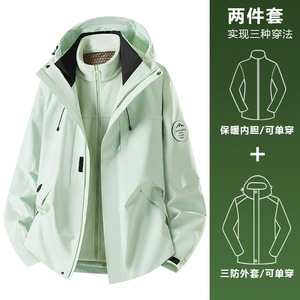 蓝色冲锋衣外套女2025新款春秋冬季户外三合一登山服