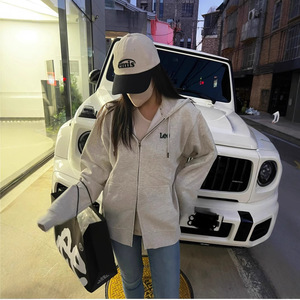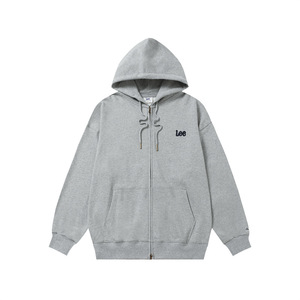 Lee经典字母小标刺绣抽绳连帽卫衣不加绒韩系休闲双拉链情侣外套