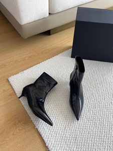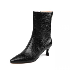 欧洲尖头细高跟早秋气质牛皮高级感炸街法式小短靴女小个子及踝靴