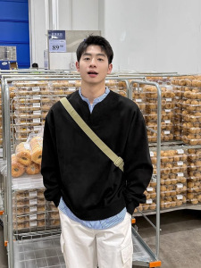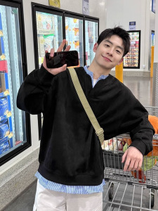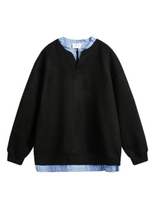 黑色假两件长袖卫衣2025新款春秋季宽松套头上衣休闲衬衫简约