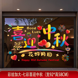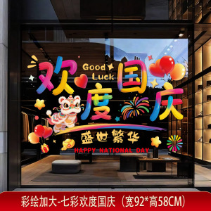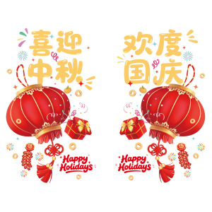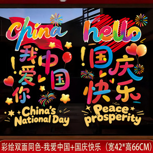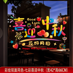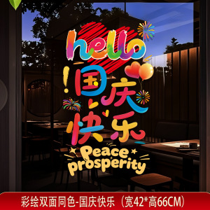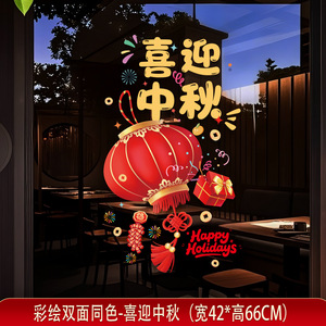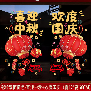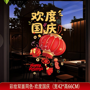 国庆装饰玻璃贴纸中秋节日十一商场景布置装饰品橱窗贴静电贴窗花