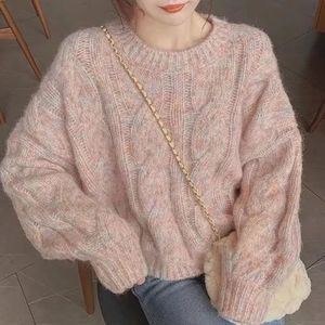 慵懒风毛衣女秋冬新款蓬松混色温柔外穿套头加厚针织衫上衣外套潮