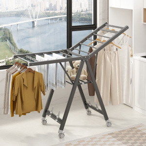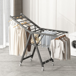 折叠晾衣架多功能家用落地式阳台卧室铝合金移动晒被晾衣杆晾衣架