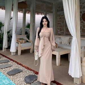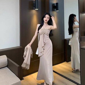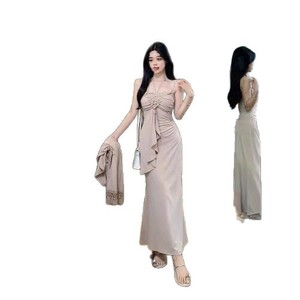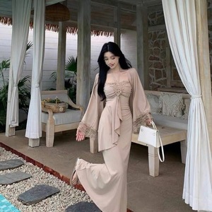 微胖mm夏装搭配一整套穿搭夏季新款大码蕾丝气质披肩吊带裙两件套