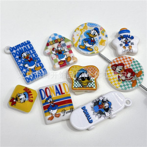 通孔唐老鸭卡通系印花滑板圆饼房子异形串珠笔手机链dit手工材料
