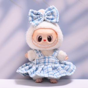 仅衣服】一二三代Labubu挂件娃衣服格子小香风发饰套装拉布布着替