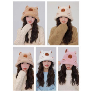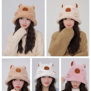 2025年冬季新款大童成人亲子款可爱卡皮巴拉保暖花盆渔夫帽宝宝成