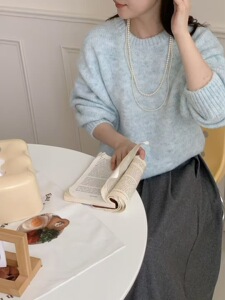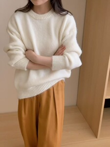纯色系落肩袖毛绒质感毛衣好搭配外穿圆领显白上衣百搭休闲针织
