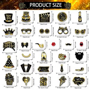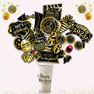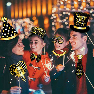 跨境30件新年黑金搞怪拍照道具 2026年跨年元旦派对装饰照片道具