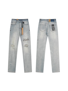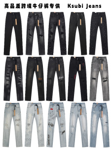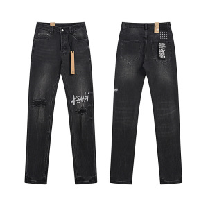 外贸高品质KSUBI &AMIRI Jeans牛仔裤高街破洞补丁弹力直筒长裤男