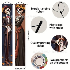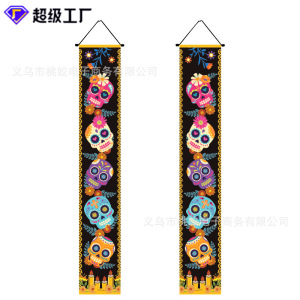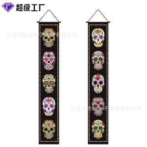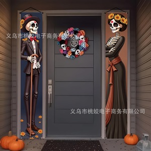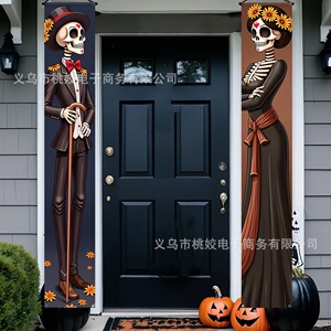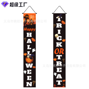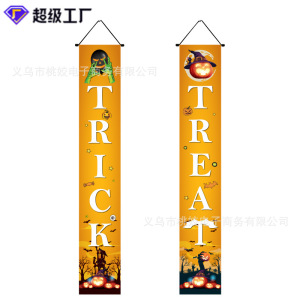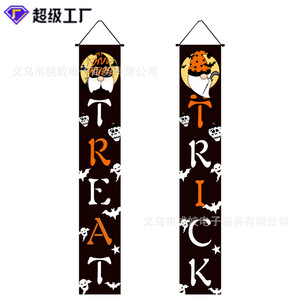 跨境亚马逊爆款万圣节涤纶挂旗户外门廊装饰墙面艺术品万圣节对联