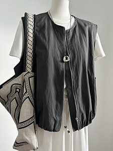 纯色工装圆领无袖马甲外套 2025秋季新品叠穿百搭简约上衣开衫