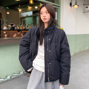 复古格子棉服女冬季新款轻薄宽松保暖小个子高级感外套上衣潮