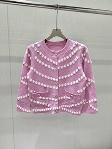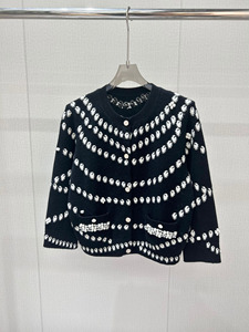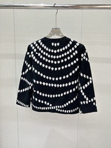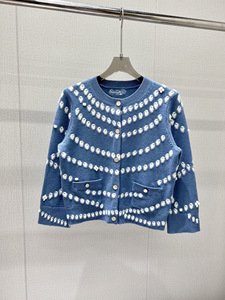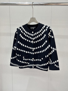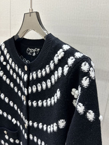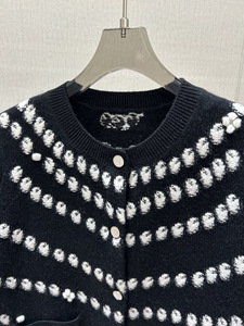 南油高端精品女装羊毛针织圆点图案长袖开衫外套气质百搭名媛风