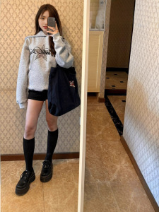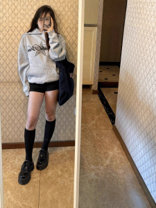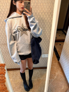 复古豹纹星星刺绣连帽卫衣女秋冬季新款宽松加绒别致外套套头上衣