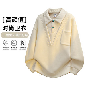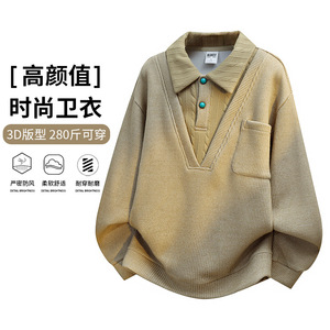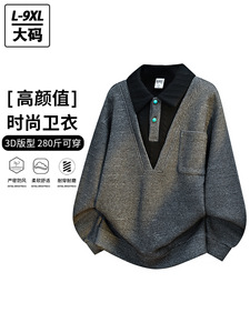 假两件加肥加大码长袖上衣男士春秋新款宽松百搭潮牌POLO领卫衣男