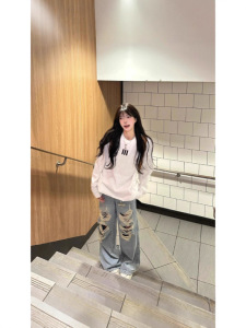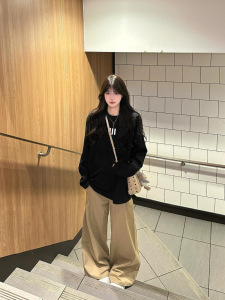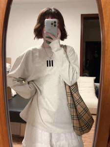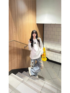 美式复古纯棉白色长袖t恤女2025新款爆款秋季宽松ins慵懒风上衣潮