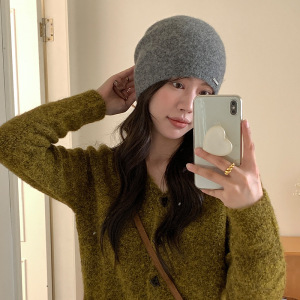 手工缝扣小标秋冬纯色针织帽休闲百搭韩国弹力包头帽日常穿搭冷帽