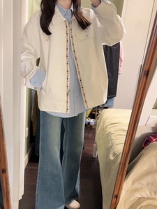 2025新款设计感韩系休闲风甜美显瘦米白色上衣外套女