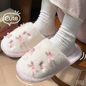 蝴蝶结拖鞋女款秋冬新款可爱高颜值 ins风家居舒适保暖防滑棉鞋